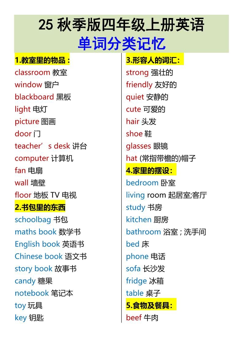 当前位置:首页学科年级四年级【2025秋新版】四年级上册英语•单词分类记忆