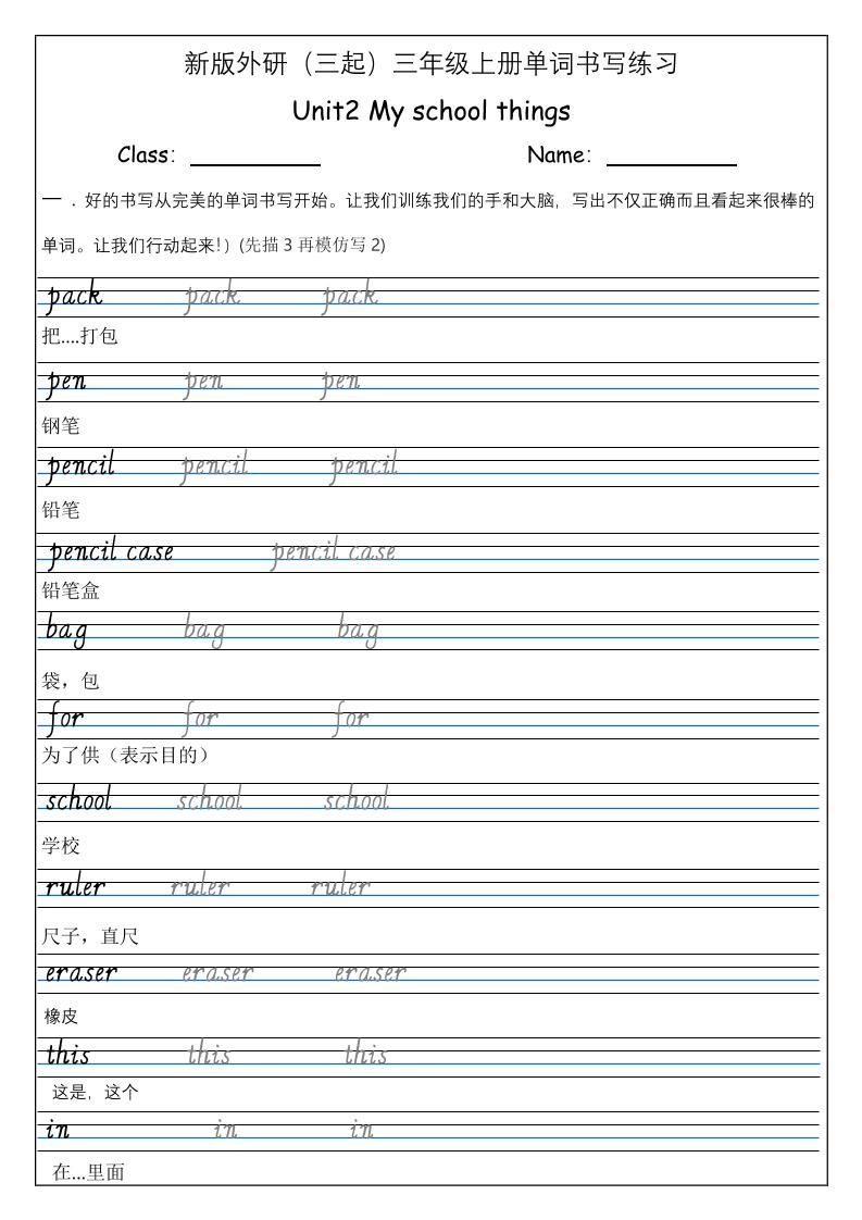 三上英语-(外研三起)Unit2Myschoolthings单词书写练习