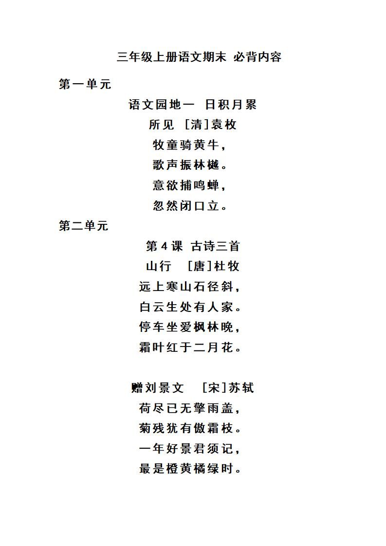 三上语文-期末必背诵内容汇