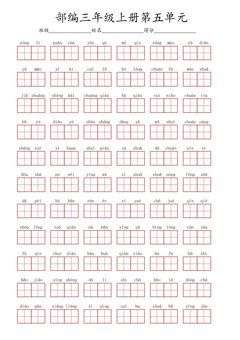 看拼音写词语三年级上册语文第五单元