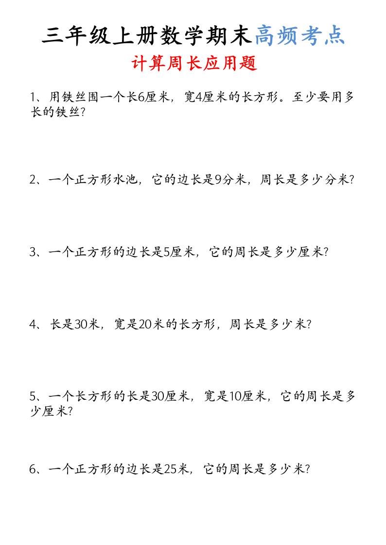 当前位置:首页学科年级三年级(空白)三年级上册数学必考重难点周长应用题