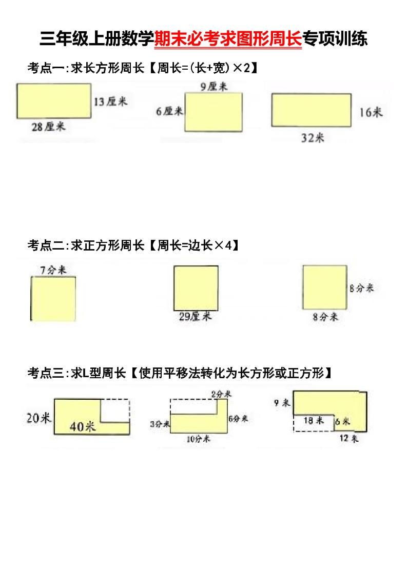 三年级上册数学期末必考求图形周长专项训练