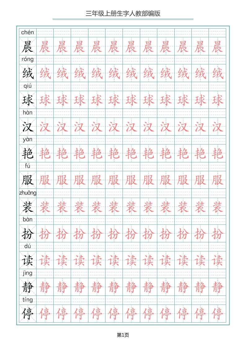 三上语文-写字表生字描红字帖