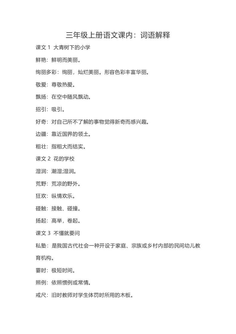 当前位置:首页学科年级三年级三上语文-语文:课内的词语解释