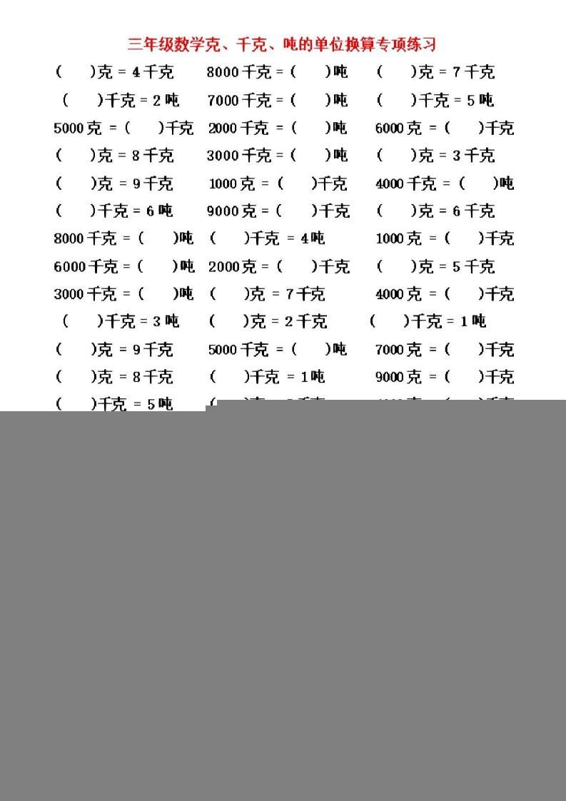 当前位置:首页学科年级三年级三年级上数学《克、千克、吨》单位换算