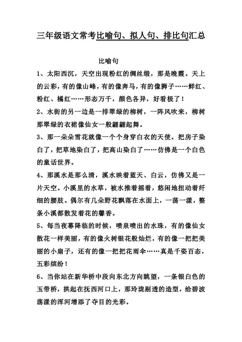 三上语文-比喻,拟人排比句