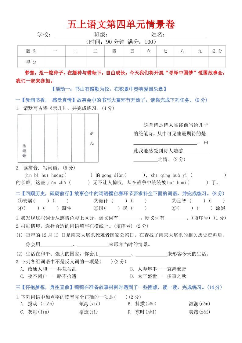 当前位置:首页学科年级五年级五上语文第四单元情景卷+答案8页