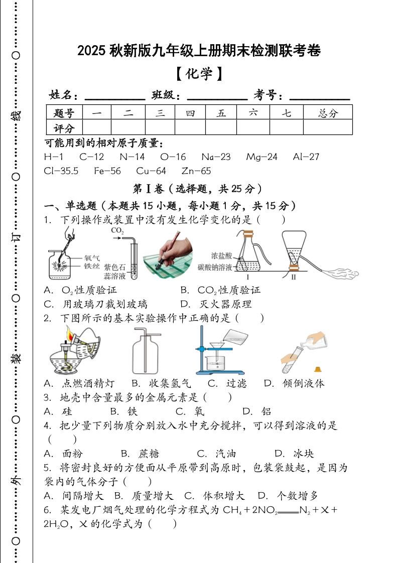 当前位置:首页学科年级九年级【2025秋新版】九年级【化学】上册期末检测联考卷(含答案)