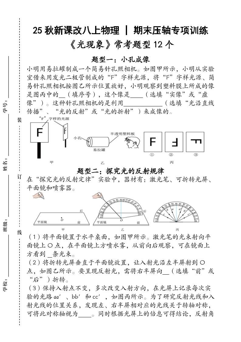 当前位置:首页学科年级八年级【2025秋新版】人教版八上物理_期末压轴专项训练《光现象》常考题型12个(含答案)