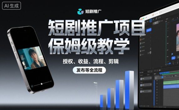 短剧推广项目保姆级教学,授权、收益、流程、剪辑,发布等全流程