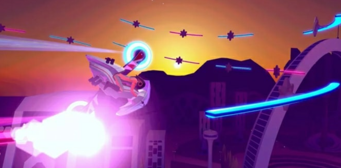 《未来滑行 FutureGrind》Switch中文版NSP下载 – 含1.0.1补丁,在这款未来风格的极限运动游戏中,你将驾驭高科技磁悬浮单车,在霓虹轨道上挑战重力极限。通过精准匹配车轮与轨道颜色,在高速滑行中完成翻转、腾跃等高难度特技。
