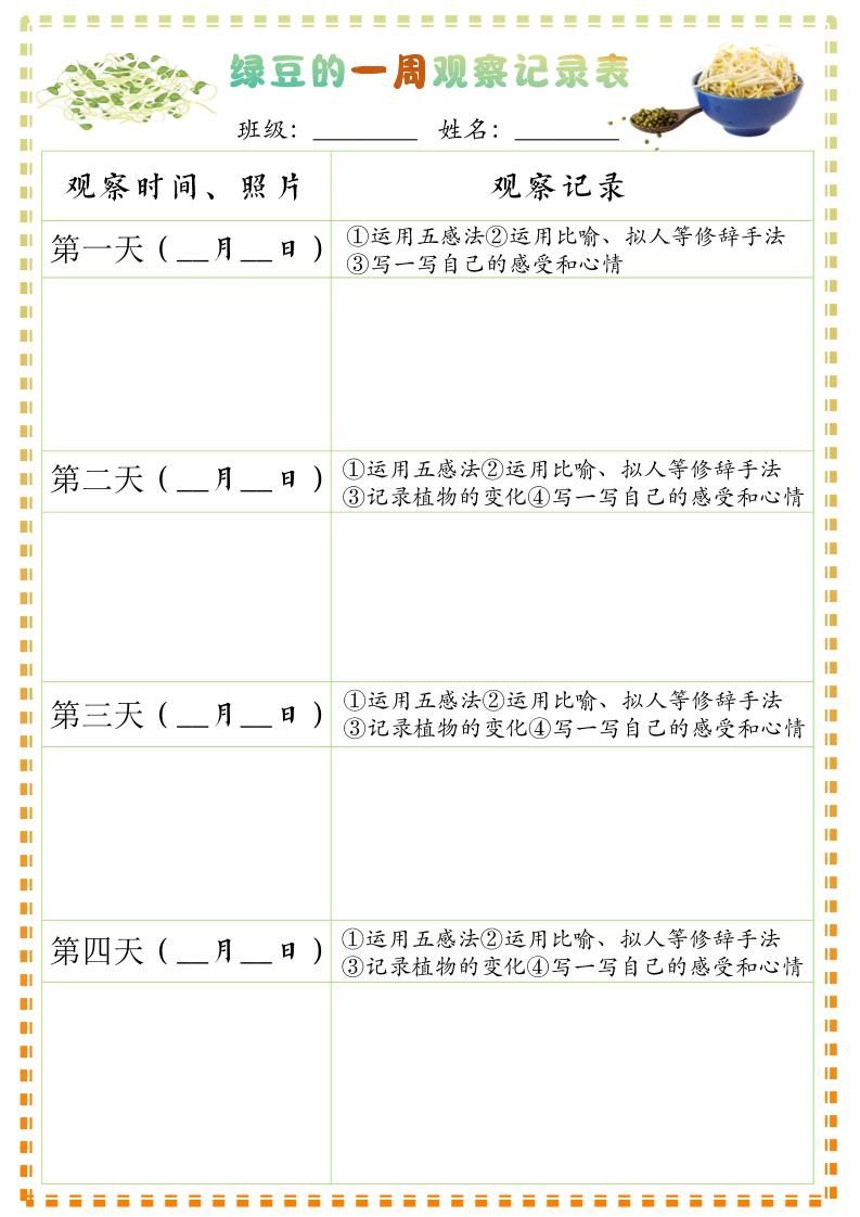 四上语文习作三:绿豆的一周观察日记1《写观察日记》9页