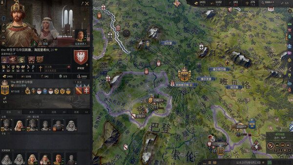 事件系统更是充满黑色幽默。当你正在召开御前会议时,某大臣突然揭发皇后与吟游诗人的绯闻;当你亲征前线时,都城却传来厨房学徒自称先王遗孤的闹剧。历经三代人终于建立横跨欧亚的帝国时,看着族谱上那些被毒杀、被囚禁、被废黜的亲属名字,突然理解了什么叫“孤独的王座”!