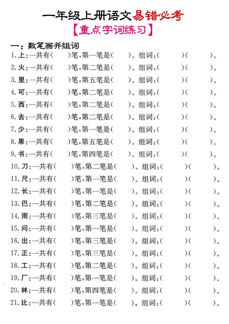 当前位置:首页学科年级一年级一年级上语文笔画+加减笔变新字专项练习