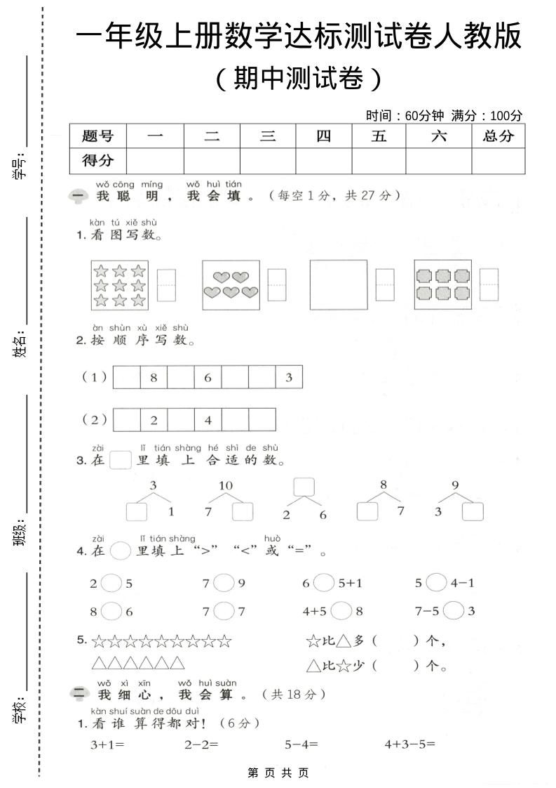 当前位置:首页学科年级一年级一年级上数学期中测试卷《人教版》