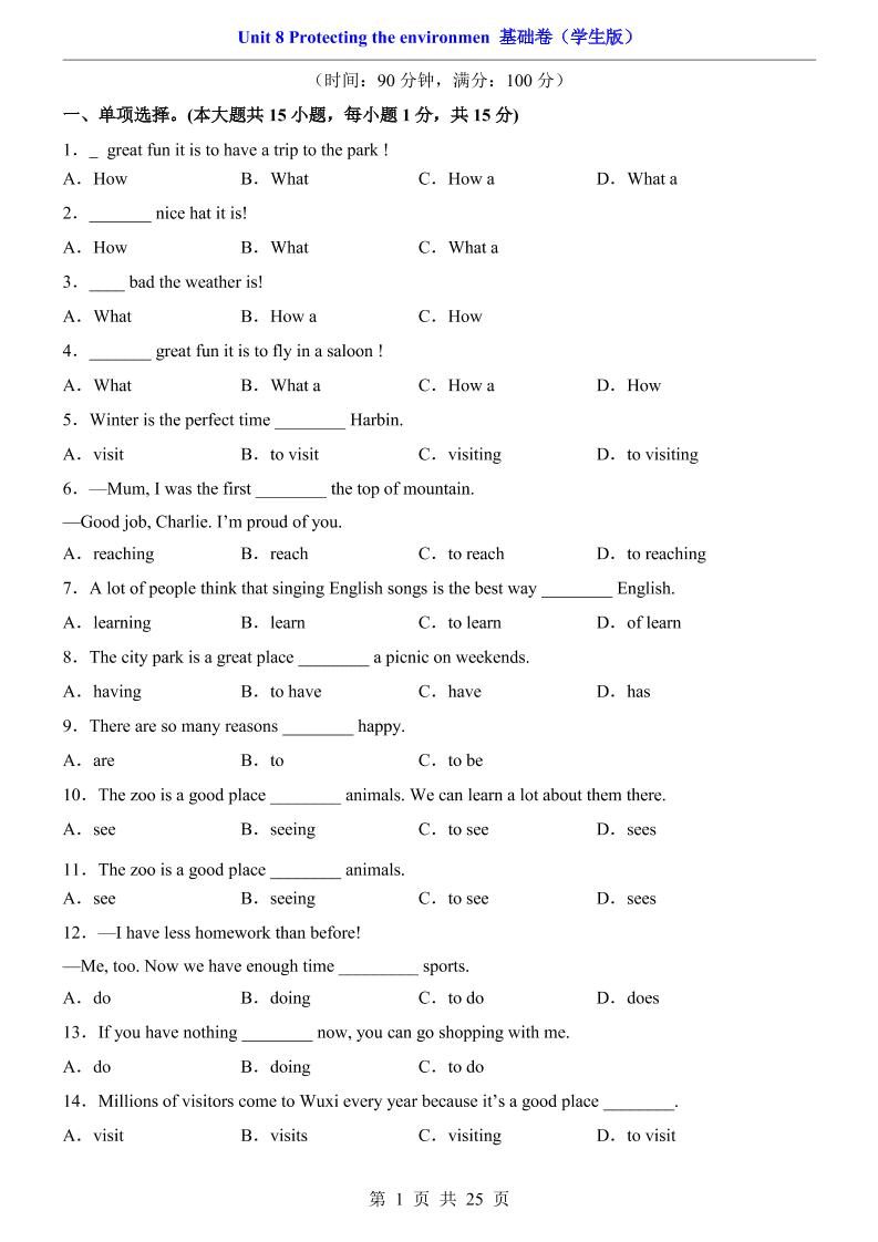 八年级上英语Unit8基础卷(人教版)