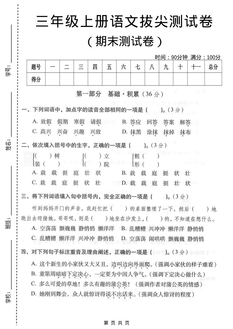 当前位置:首页学科年级三年级三年级上语文期末拔尖测试卷3
