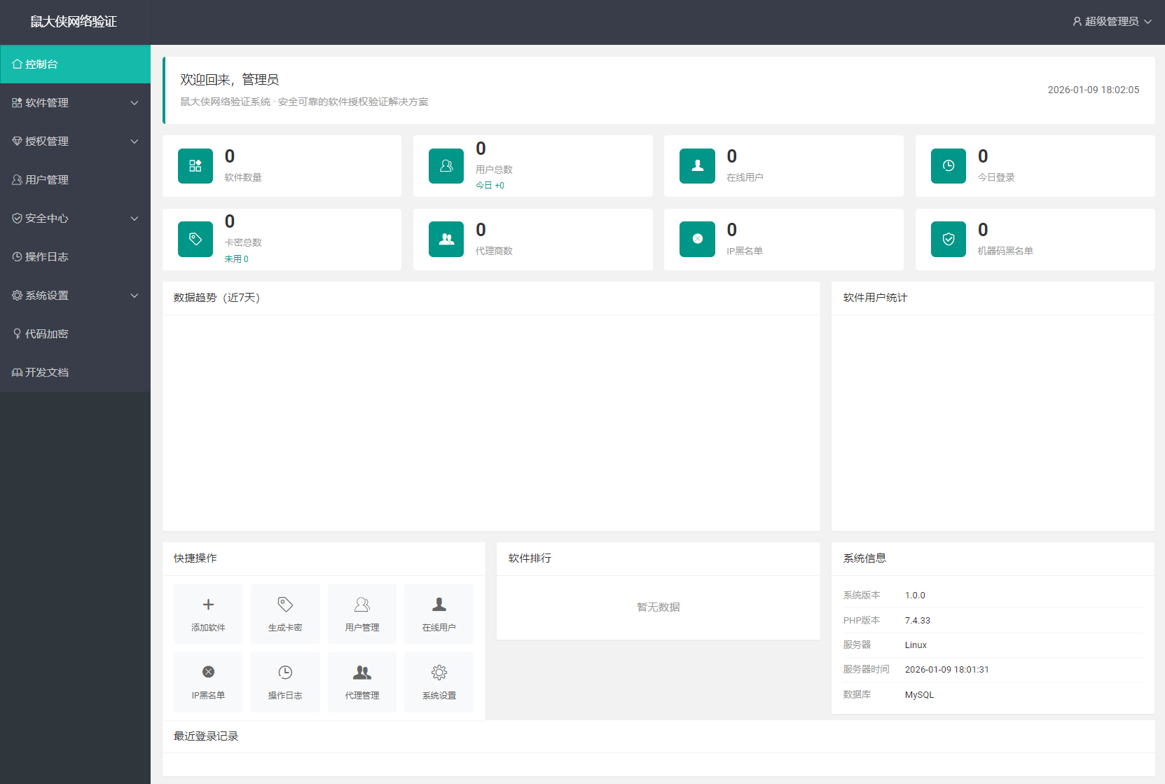 鼠大侠网络验证系统源码 一机一码授权验证 全开源