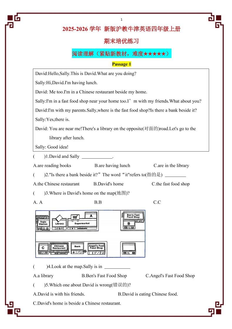 四年级上英语期末阅读理解(专项训练)《沪教牛津版》
