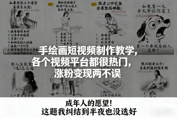 手绘画短视频制作教学,各个视频平台都很热门,涨粉变现两不误