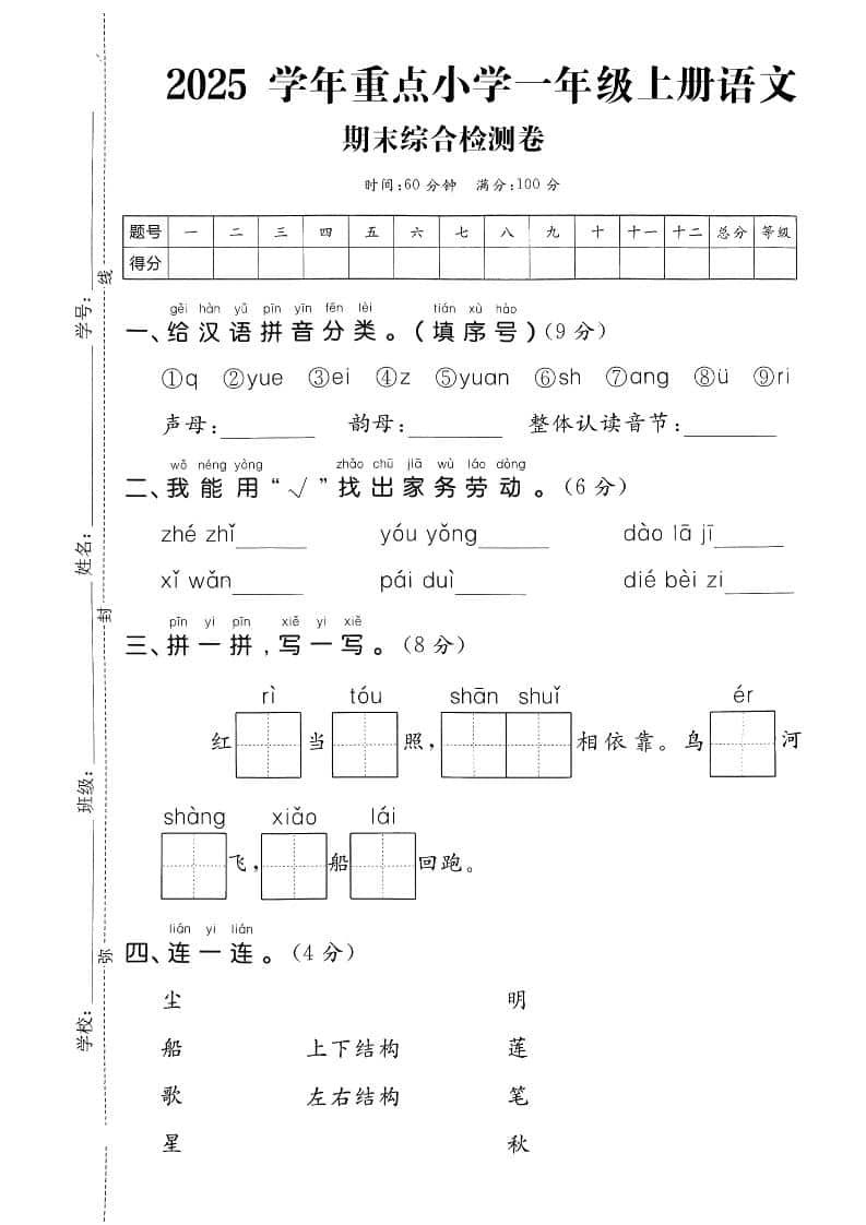 一年级上语文期末综合检测卷