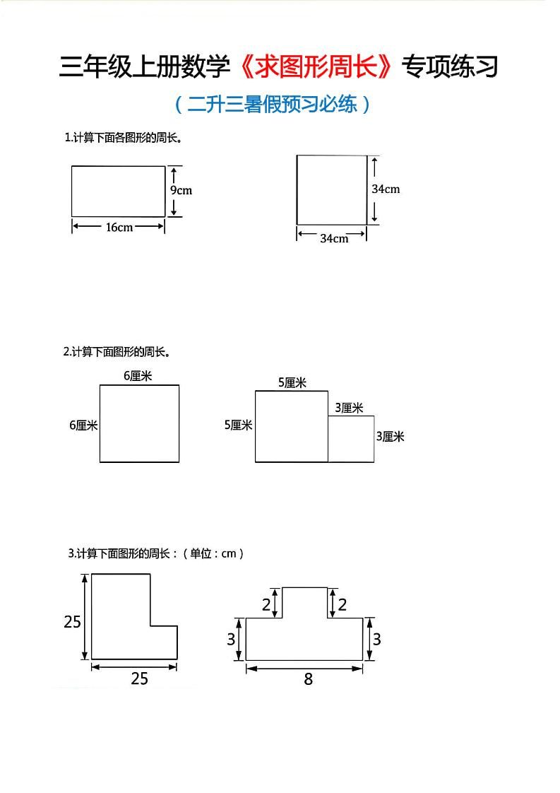 三年级上数学《求图形周长》专项练习