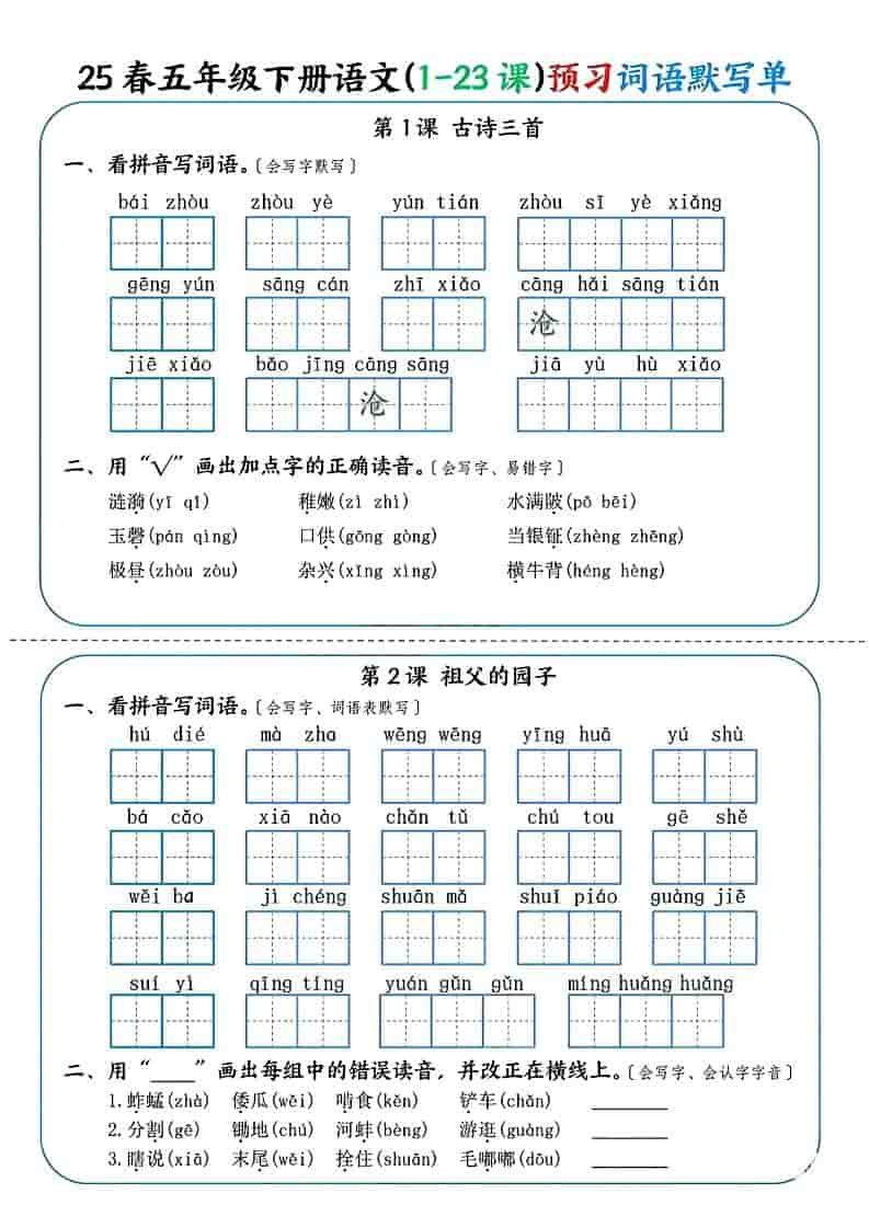 当前位置:首页学科年级五年级五年级下语文(1-23课)预习词语默写单