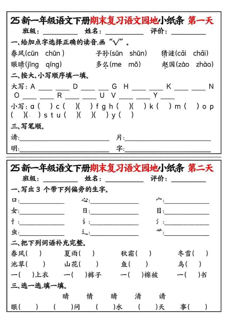 一年级下语文期末复习语文园地小纸条