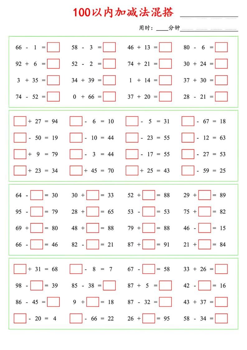 当前位置:首页学科年级一年级一年级下数学100以内口算加减法混搭
