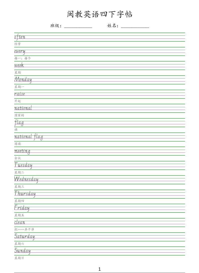 当前位置:首页学科年级四年级四年级下英语手写体字帖《闽教版》