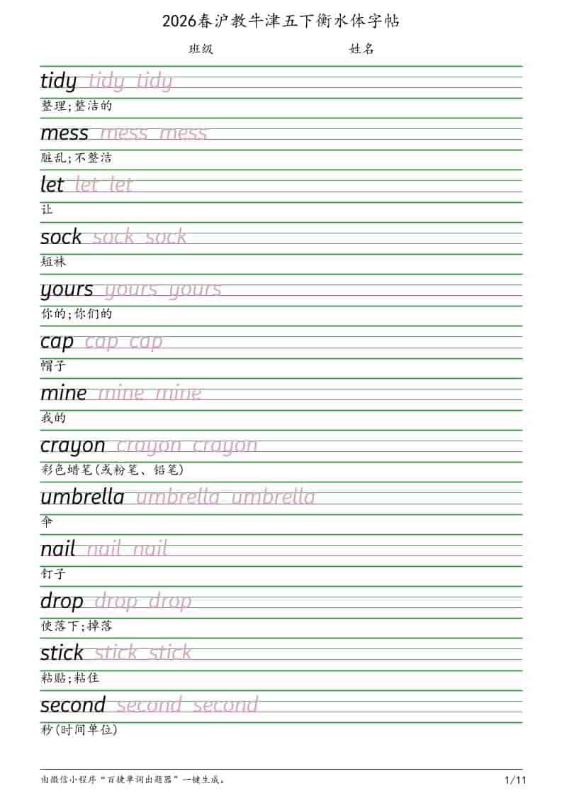 当前位置:首页学科年级五年级五年级下英语衡水体字帖《沪教版》