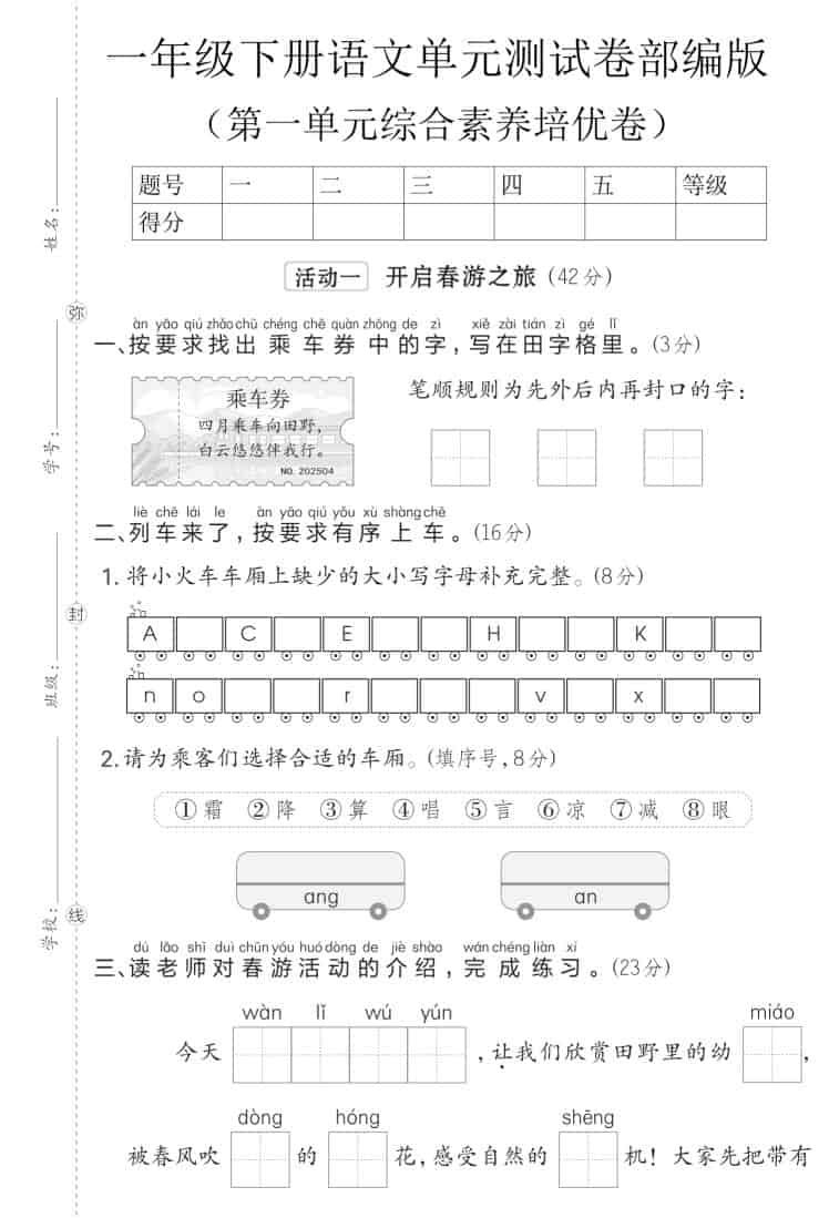 当前位置:首页学科年级一年级一年级下语文第一单元综合素养培优卷《部编版》