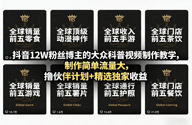 抖音12W粉丝博主的大众科普视频制作教学,制作简单流量大,撸伙伴计划+精选独家收益