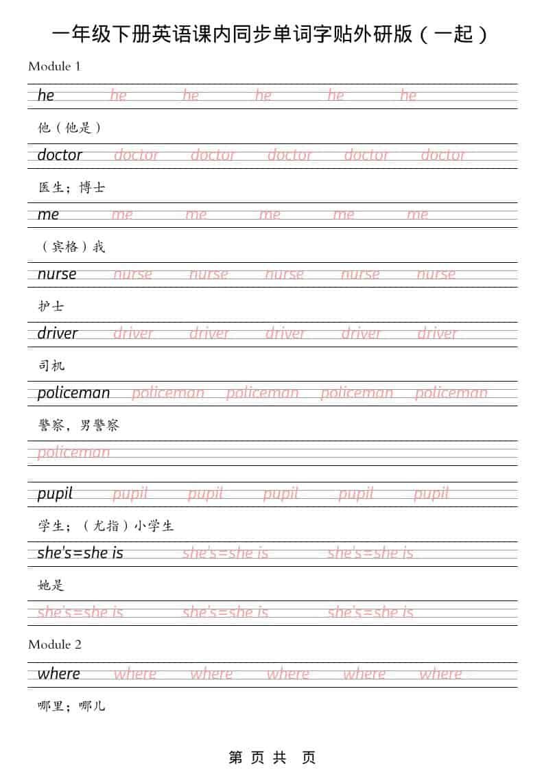 一年级下英语课内同步字帖《外研版(一起)》