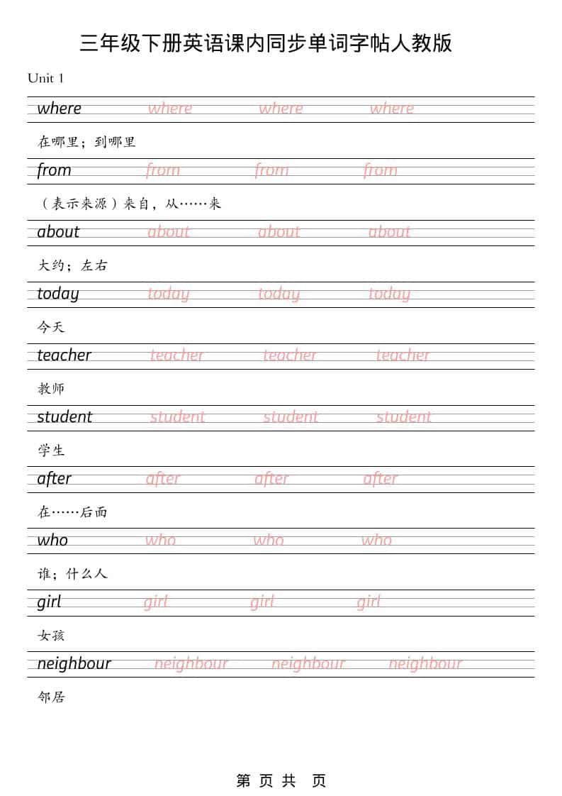 三年级下英语课内同步单词字帖《人教版PEP》
