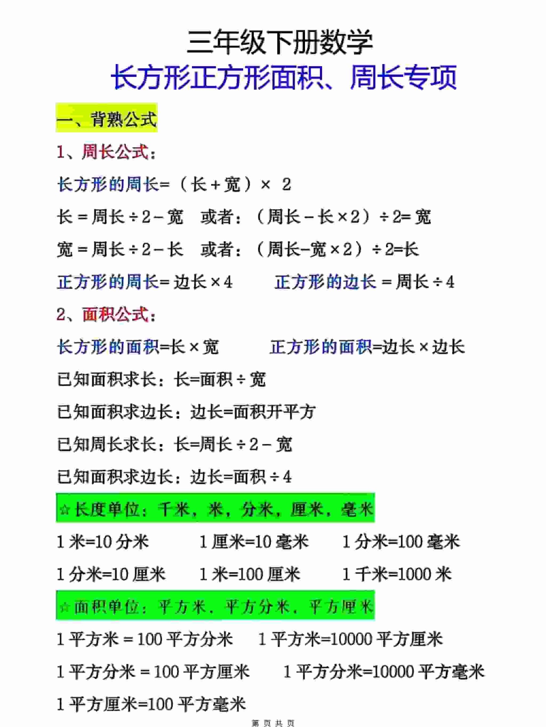 当前位置:首页学科年级三年级三年级下数学周长面积专项练习