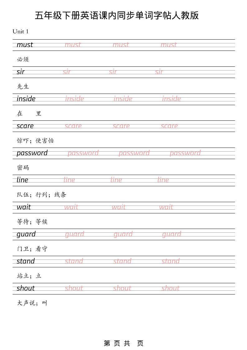 当前位置:首页学科年级五年级五年级下英语课内同步单词字帖《人教版PEP》