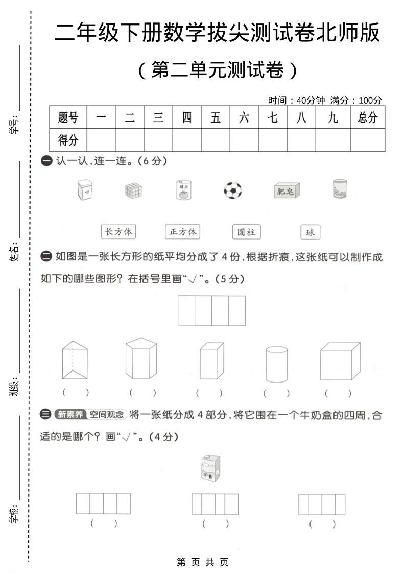 当前位置:首页学科年级二年级二年级下数学第二单元拔尖测试卷《北师版》