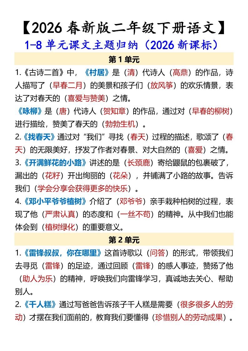 当前位置:首页学科年级二年级二年级下语文1-8单元课文主题归纳