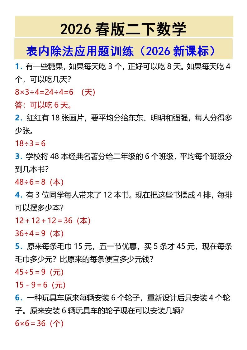 当前位置:首页学科年级二年级2026春新版二年级下数学表内除法应用题训练