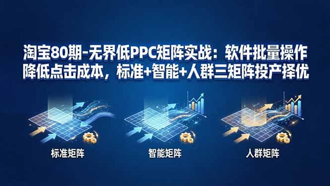 本课程是叮当会淘宝第80期《无界低PPC矩阵》,系统讲解通过软件批量操作实现低PPC矩阵玩法。课程涵盖实操案例+软件+玩法核心、匹配的品类和店铺、起步配置(礼金配置+素材提交)、标准矩阵(软件批量PPC操作)、批量调整各维度数据、投产优化(词人优化+去留调整)、智能矩阵(软件低PPC操作)、整体调整数据、点击和成交切换调整、人群矩阵、自动优化+自动规则、3种计划矩阵对比投产择优、成功核心经验等15节系统课。帮助学员通过软件矩阵玩法,实现低PPC高投产的精准推广。