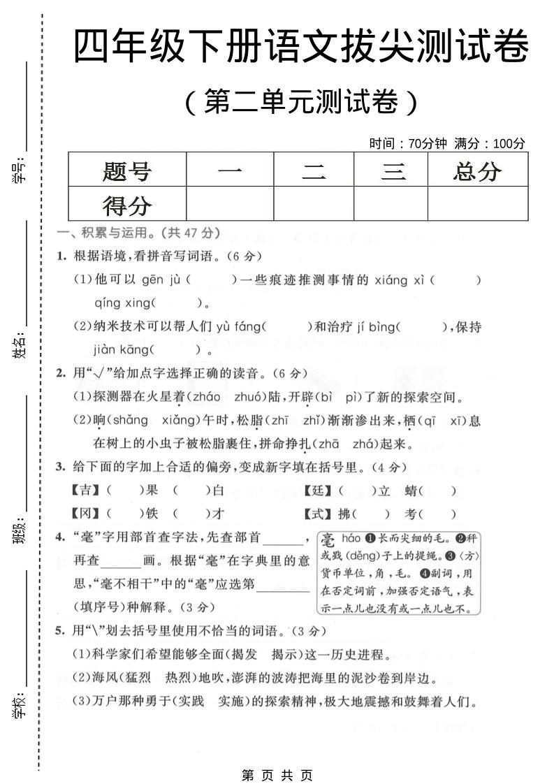 当前位置:首页学科年级四年级四年级下语文第二单元拔尖测试卷