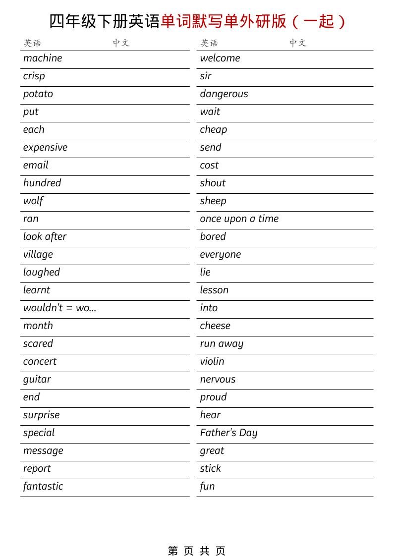 当前位置:首页学科年级四年级四年级下英语全册单词默写单《外研版(一起)》