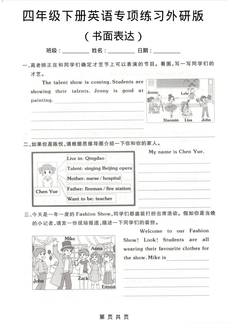 当前位置:首页学科年级四年级四年级下英语书面表达专项练习《外研版》