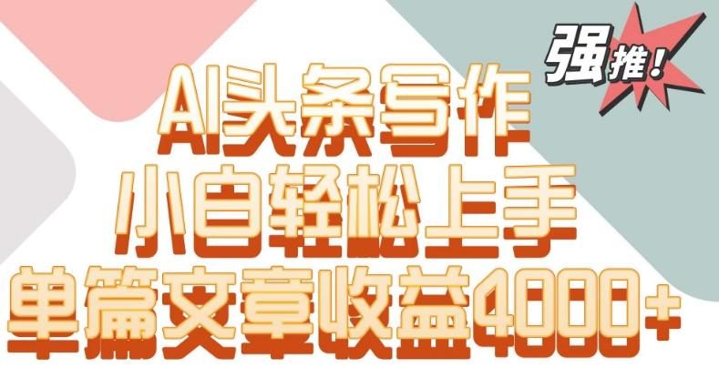 单片文章收益4000+!AI头条写作,小白轻松上手【揭秘】