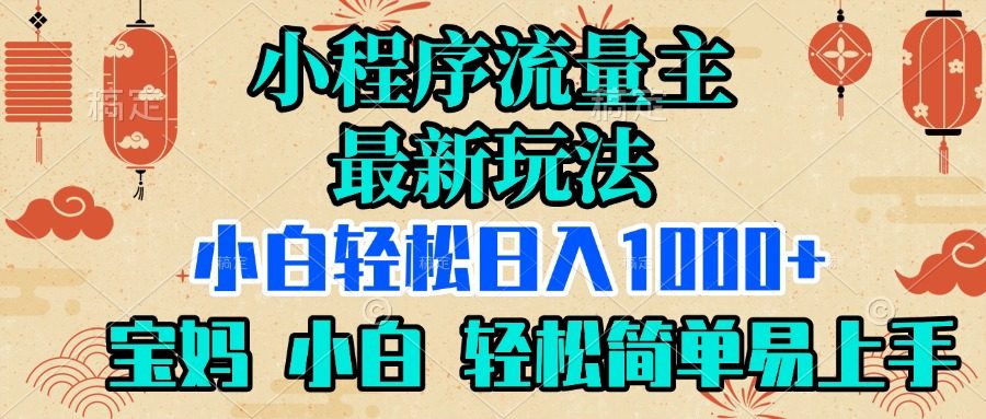 小程序流量主最新玩法,小白轻松日入1000+,宝妈 小白轻松简单易上手