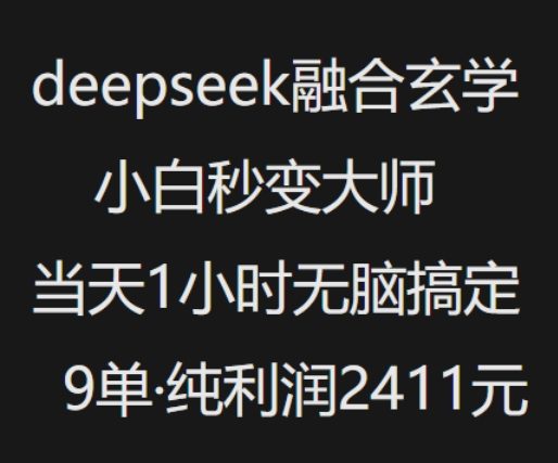 抖音小红书deepseek融合玄学,纯小白秒变大师,当天1小时无脑搞定9单,纯利润上千