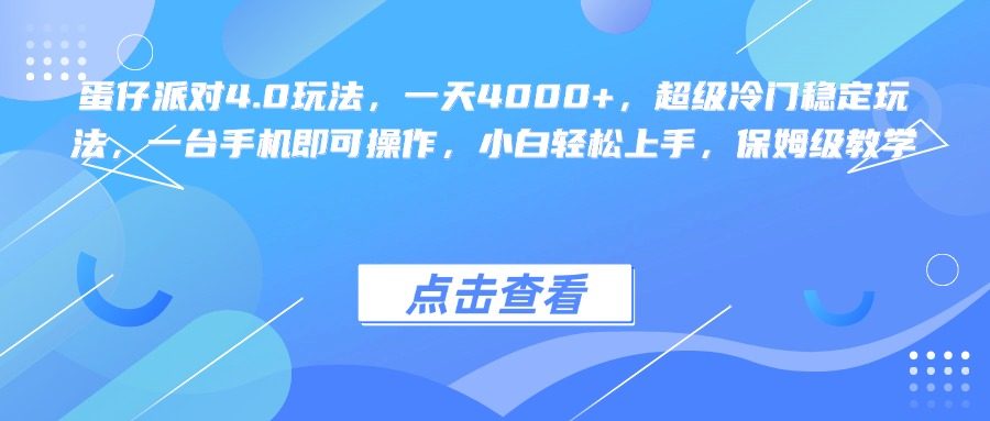 大家好,今天给带来的项目是“蛋仔派对4.0玩法,一天4000+,超级冷门稳定玩法,一台手机即可操作,小白轻松上手,保姆级教学”,一单几十,利用第三方平台放单轻轻松松日入几千,下面是教程和资料