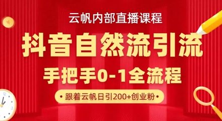 【云帆内部直播课】抖音最新自然模版引流玩法,单号单日引300+精准创业粉