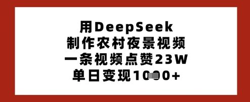 用DeepSeek制作农村夜景视频,一条视频点赞23W,单日变现多张